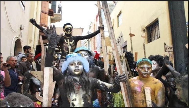 وتجمع المشاركون في ساحة كبيرة، وقدموا أغاني ورقصات كالهنود الحمر مرددين عبارة “زامبو زامبو كوي بوي”، حيث انتظرهم الأهالي لمشاركتهم الغناء والرقص والتقاط الصور معهم. وفي الختام، عمد المشاركون إلى السباحة في بحر الميناء، على الرغم من تدني حرارة المياه وذلك بهدف تنظيف أجسادهم. تجدر الإشارة، إلى أن إطلاق هذا الكرنفال في لبنان يعود إلى ثلاثينات القرن الماضي، لكن توقف الاحتفال به خلال السنوات الأولى للحرب الأهلية اللبنانية التي دارت بين عامي 1975 و1990، ثم استؤنف المهرجان عام 1985 وظل تقليدا سنويا منذ ذلك الحين، وبات يشارك فيه المئات بعد أن كانوا بضع عشرات سابقا، وبعض النسوة وأبناء الطوائف الأخرى.