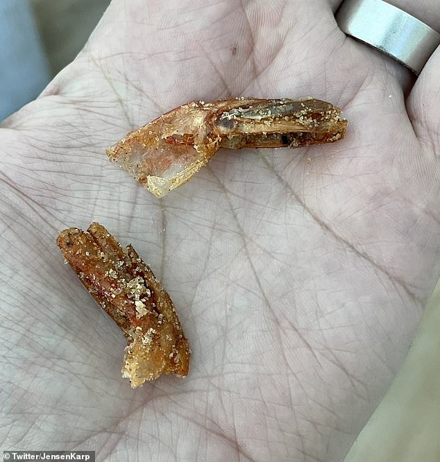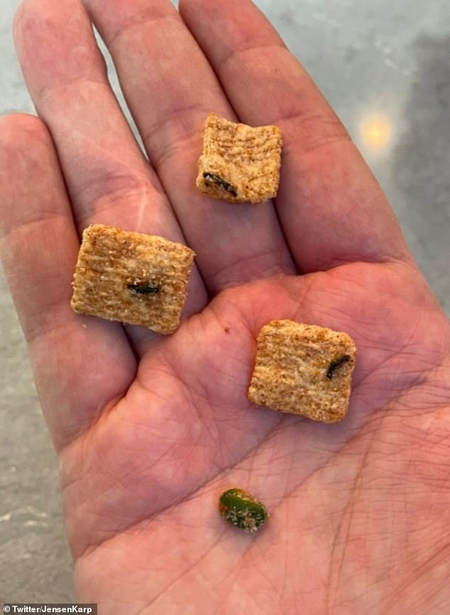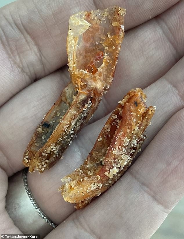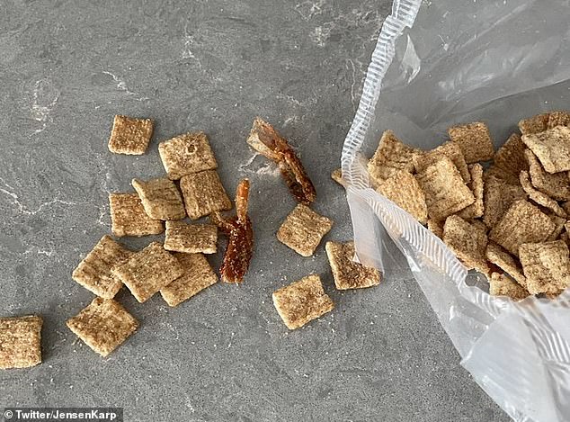 ووفقا لـ “سكاي نيوز”، كان الكاتب ومقدم البودكاست جنسن كارب يتسلى بتناول المقرمشات المفضلة لدية، ذات نكهة القرفة، فاكتشف الصدمة داخل العلبة وهي ذيلي جمبري (روبيان)، مغطيين بالسكر وممزوجين بالحبوب المقرمشة.