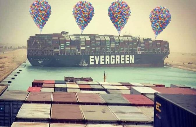 تفاعلت مواقع التواصل الاجتماعي مع أزمة السفينة اليابانية العالقة في قناة السويس والمستمرة منذ عدة أيام، بالتغطية المعتادة، إلا أن كثيرا منها اتجه إلى السخرية من الجهود المبذولة لحل الأزمة، والتي يبدو أنها لن تنجح قريبا. حيث ظهرت صورة تسخر من الحلول المقترحة مقارنة بحجم الأزمة، حيث ظهرت السفينة العالقة وكتب عليها متطلبات زواج شاب؛ من شقة بمليون جنيه مصري وفرش وسيارة وغيرها بمئات الألوف، فيما بدا الحفار المنقذ بإمكانات شاب راتبه 2000 جنيه شهريا.