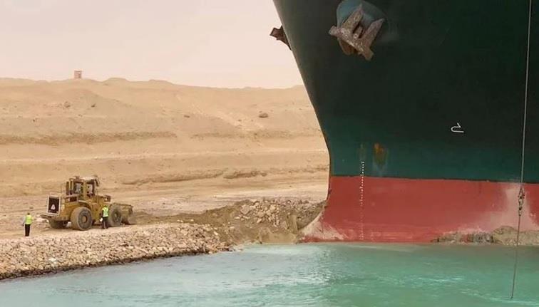 ولعل الصورة الأبرز انتشارا حول العالم خلال الأزمة هي التي كشفت عن بداية جهود إنقاذ السفينة، والتي تمثلت في آلية حفر ورجلين، وسخرت التعليقات من الموقف بالقول: “رجلان وحفار يحاولون إنقاذ الاقتصاد العالمي”.