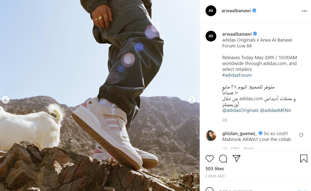 طرحت شركة الملابس الرياضية العالمية adidas حذاء جديد صمم بأنامل المصممة السعودية أروى البنوي.