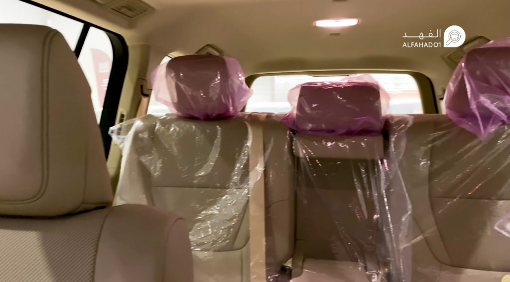 وبين أن سعة خزان الوقود 110 لتر، بنزين 95، ومقابض الأبواب كروم، ومن الداخل مراتب جلد، ونظام صوتي فاخر من Gbl مع توزيع جيد للإضاءة.