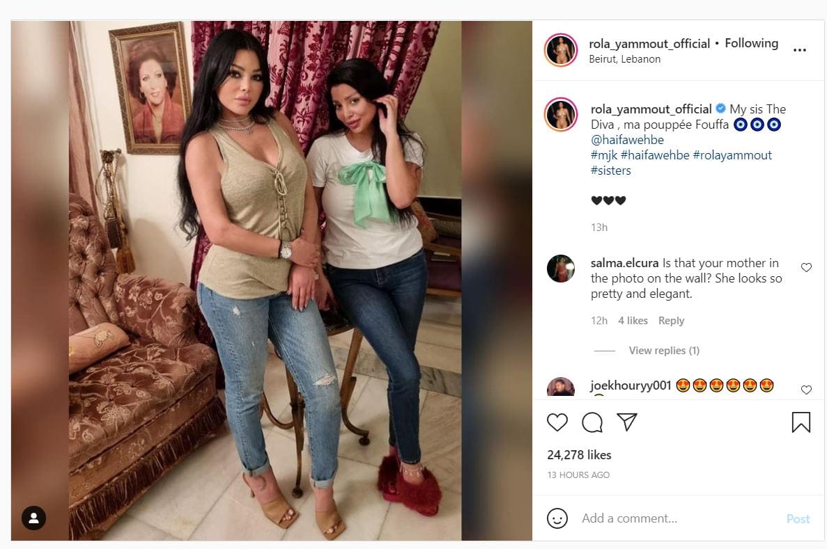 نشرت رولا يموت عبر صفحتها الخاصة على إنستغرام صورة تجمعها بشقيقتها الفنانة هيفاء وهبي، وذلك خلال لقائهما في منزل والدتهما في بيروت.