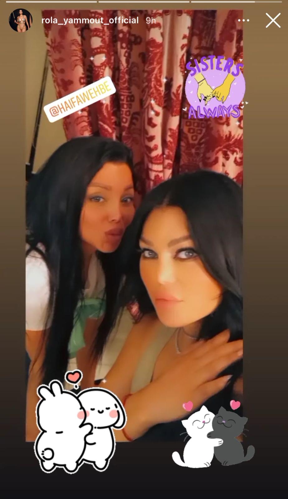 وظهرت رولا يموت سعيدة جدا بلقائها شقيقتها هيفاء وهبي؛ إذ عمدت إلى نشر العديد من الصور الخاصة باللقاء، وتغزلت بجمال شقيقتها معلقة على الصور بالقول: شقيقتي الديفا، اللعبة الجميلة فوفا.