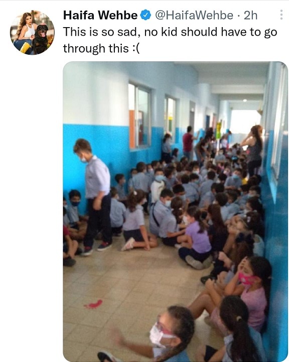 أثارت صورة لأطفال لبنانيين محاصرين في إحدى المدارس في بيروت جراء الاشتباكات المسلحة التي وقعت في منطقة “الطيونة” وضواحيها حالة من الحزن والخوف بين النجوم والجمهور على مواقع التواصل. ونشر عدد من النجوم اللبنانيين صور الأطفال المحتجزين، وقالوا إنها أعادتهم بالذاكرة إلى الحرب الأهلية التي حدثت في لبنان في سبعينيات القرن الماضي. وعبرت الفنانة هيفاء وهبي عن حزنها لهذا المشهد، مشيرة إلى أن الأطفال يجب ألّا يعيشوا هذه اللحظات العصيبة.