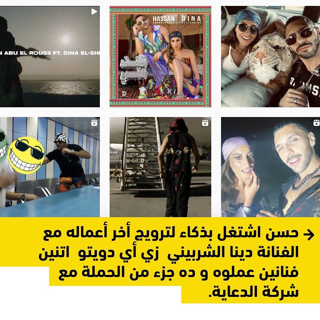وكتبت غادة والي على الصور مجموعة من المعلومات عن زوجها، في محاولة للدفاع عنه بعد انتشار أخبار منعه من دخول السجادة الحمراء في مهرجان الجونة، والانتقادات التي وجهت له وتتضمن السعي وراء تصدر “الترند” على مواقع التواصل الاجتماعي بتصرفاته وأزيائه الغريبة. وأشارت زوجة حسن أبو الروس إلى أن ظهوره ليس بجديد على الساحة الفنية، بل بدأ التمثيل منذ حوالي 10 سنوات، وشارك في عدة مهرجانات سابقا مثل “أفينيون” في فرنسا. وحول الجدل الأخير الذي أحدثه أبو الروس مع دينا الشربيني، علقت غادة والي: “حسن اشتغل بذكاء لترويج آخر أعماله مع الفنانة دينا الشربيني زي أي دويتو اتنين فنانين عملوه وده جزء من الحملة مع شركة الدعاية”.