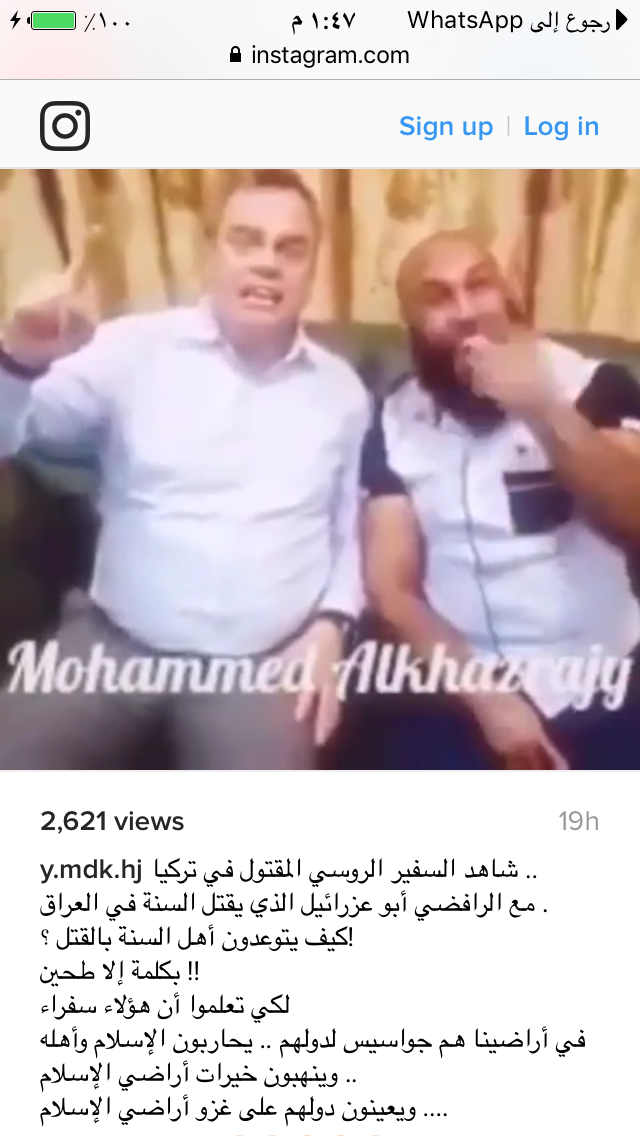 أعتقد أن ما تم ، ما هو إلا مشهد مسرحي فاشل ، قامت به السلطات الروسية ، ولعدة أسباب ، منها تغطية على جرائمها الإنسانية في حلب ، ولتخفيف الغضب والضغط الدولي والشعبي عليها خاصة العرب والمسلمين ، وتحويل أنظارهم إلى حادثة الإغتيال .. ولا ننسى تشويه صورة الإسلام أمام العالم ، وأن ما يقوموا به في حلب له تبرير ، وهذا الدليل .