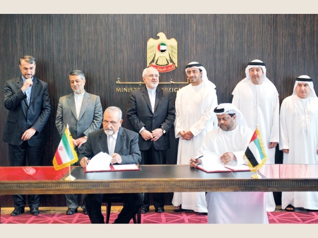 وقام سمو الشيخ عبدالله بن زايد آل نهيان ومحمد جواد ظريف وزير الخارجية الإيراني في ختام الاجتماع بالتوقيع على محضر اجتماعات اللجنة .